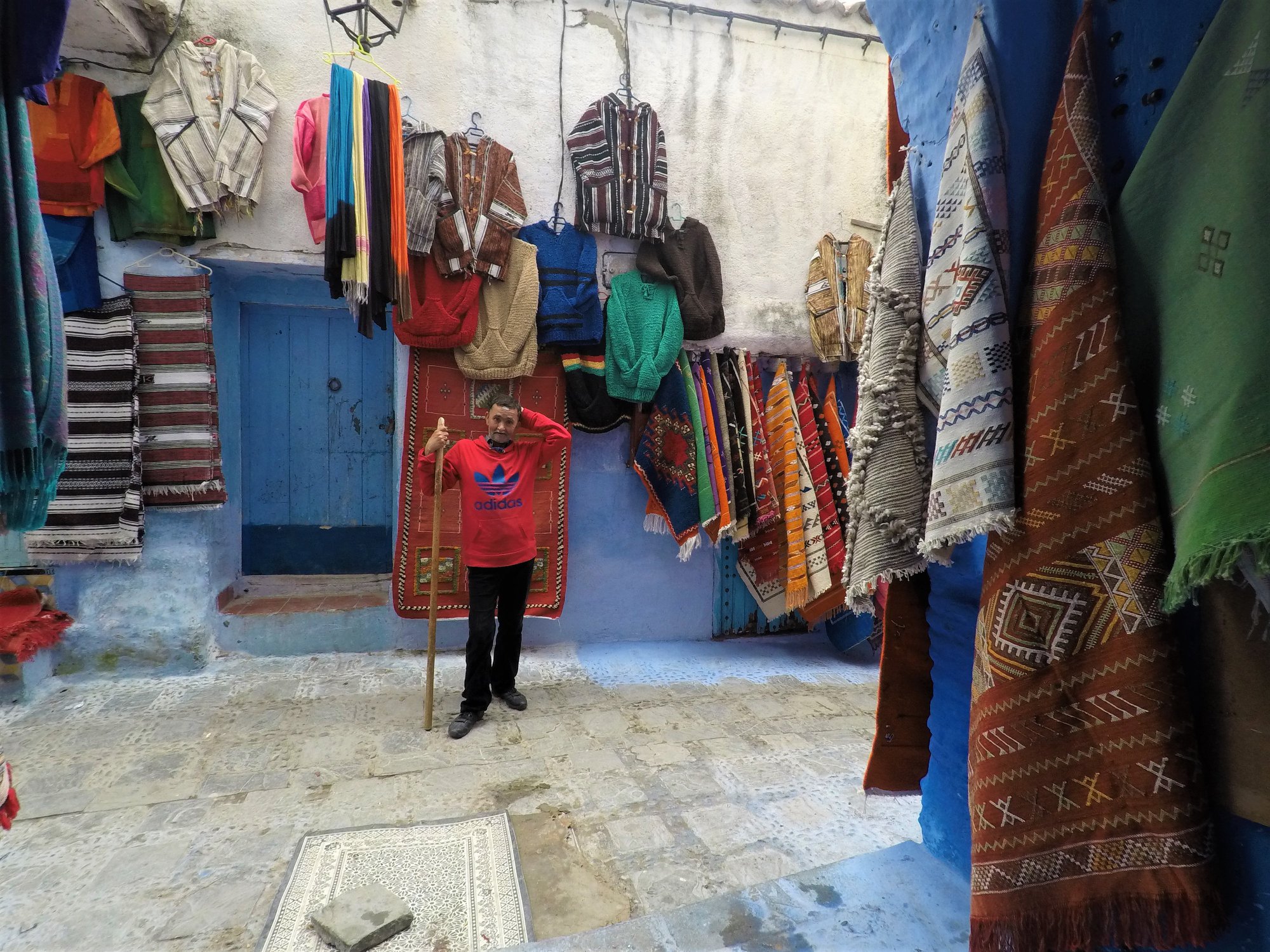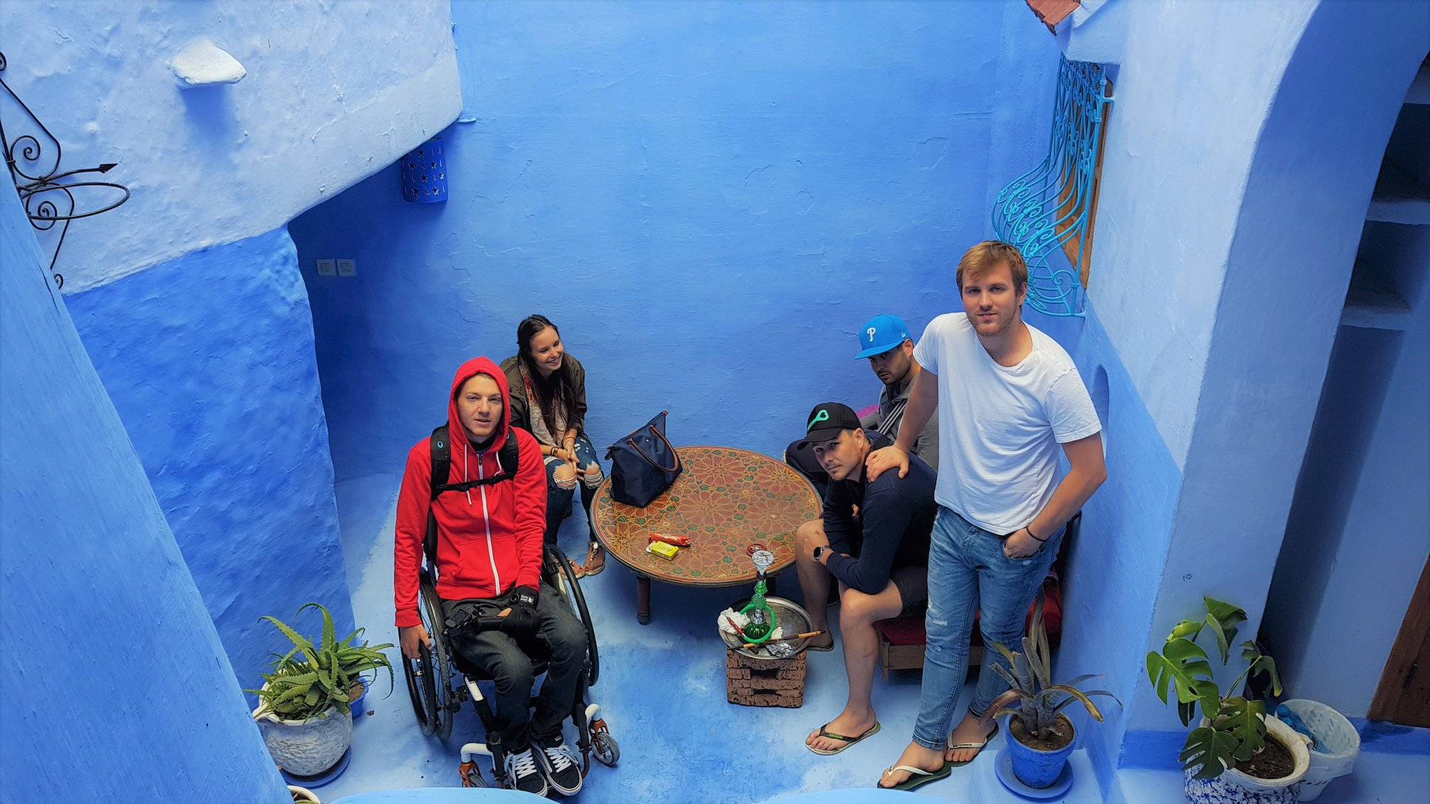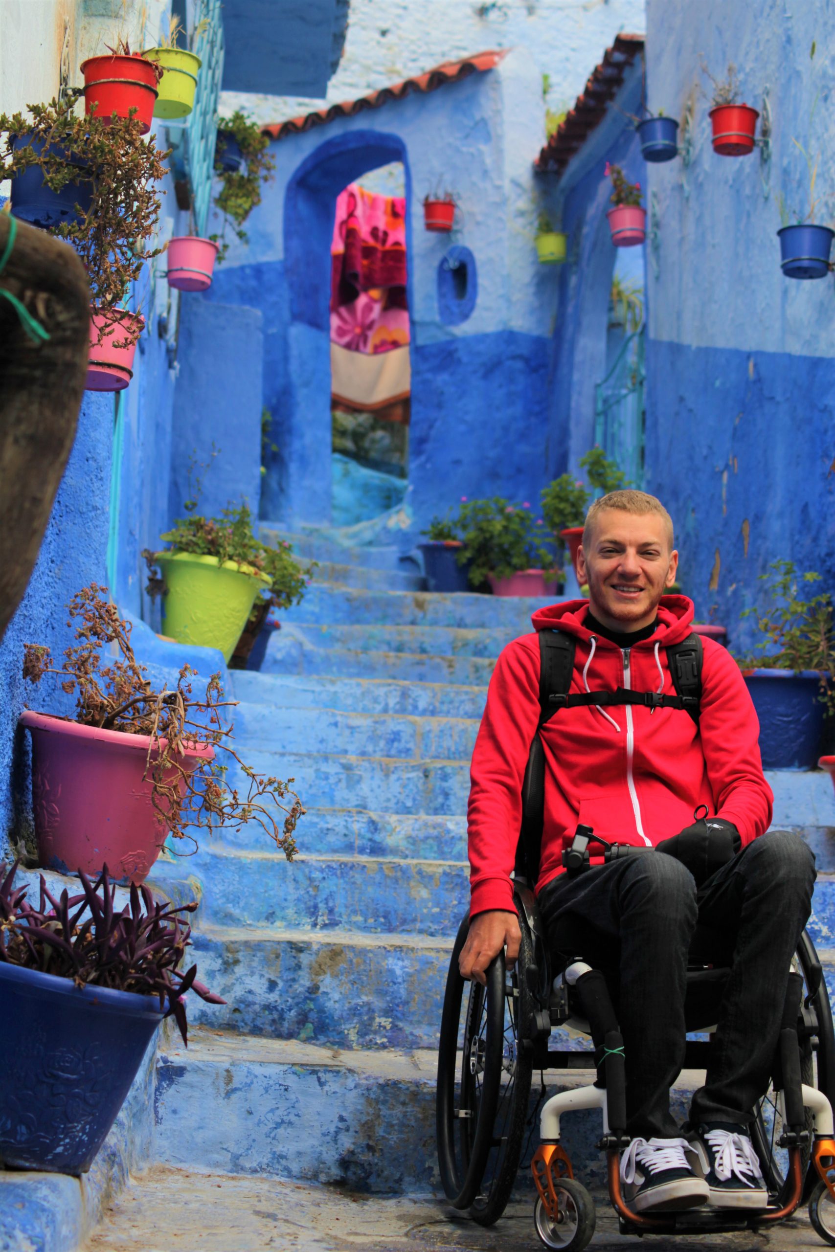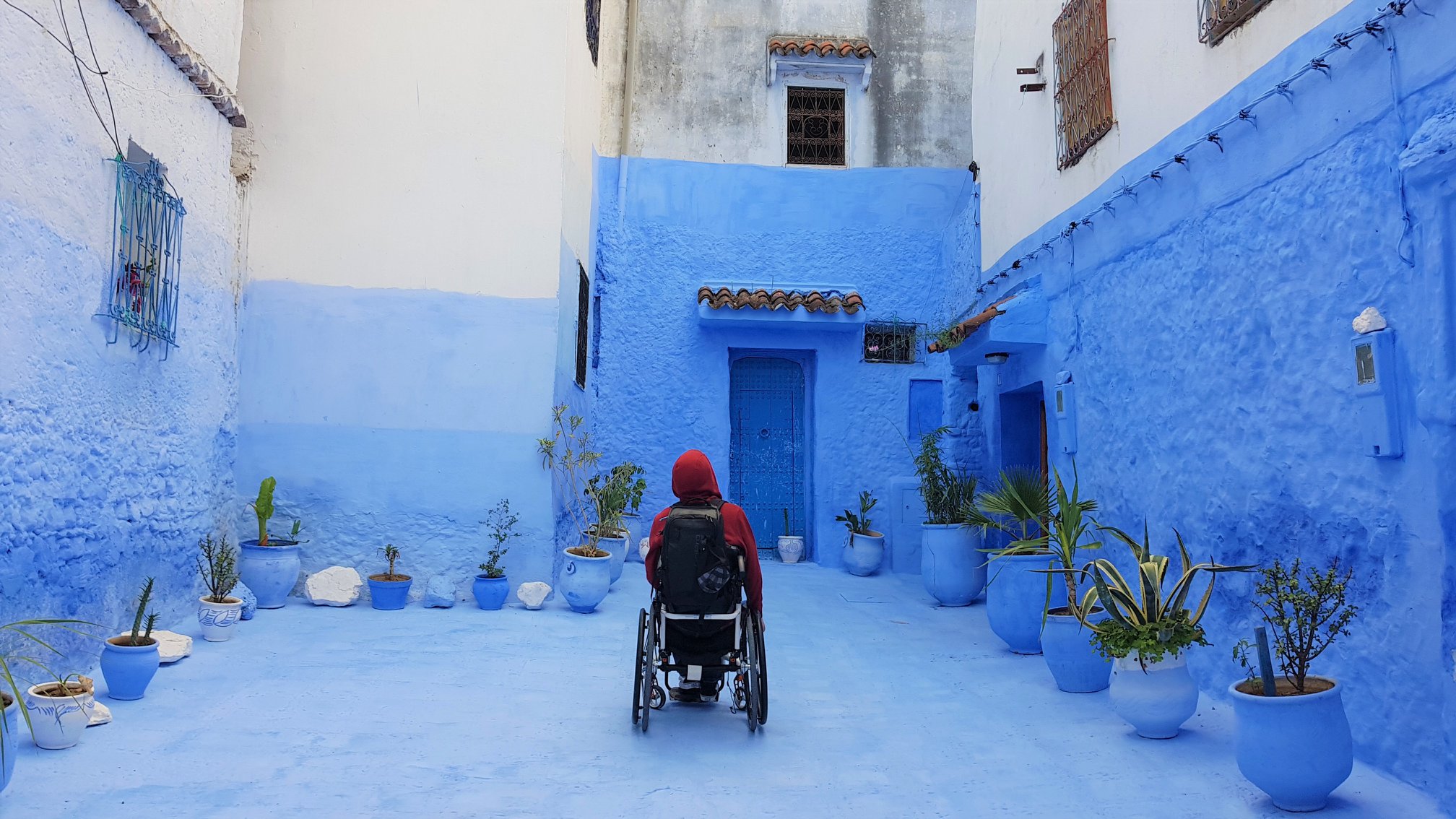 Dolaskom u naš riad, ispred vrata nas dočekuje simpatični, brkati i nižeg rasta gospodin. Vidjevši mene, govori nam „You are crazy, Chefchaouen with wheelchair“, očito fasciniran našim dolaskom s kolicima, s obzirom na to da se grad nalazi na brdu i prepun je uzbrdica, nizbrdica i stepenica.