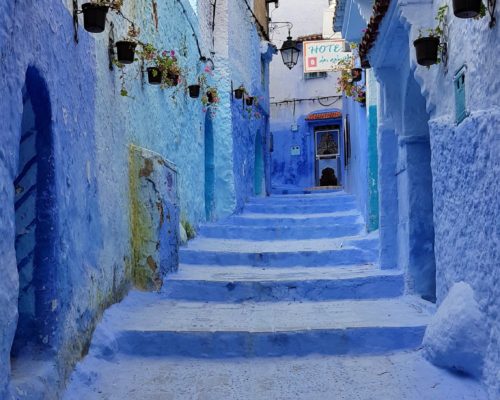 Nakon cjelodnevnog razgledavanja i puta, stižemo u Chefchaouen, slikoviti gradić smješten u planinama Rif, na sjeveru Maroka. Poznat je po svojim intenzivno plavim kućama, uskim uličicama i opuštenoj atmosferi, zbog čega je jedan od najfotografiranijih i najčarobnijih gradova u zemlji.