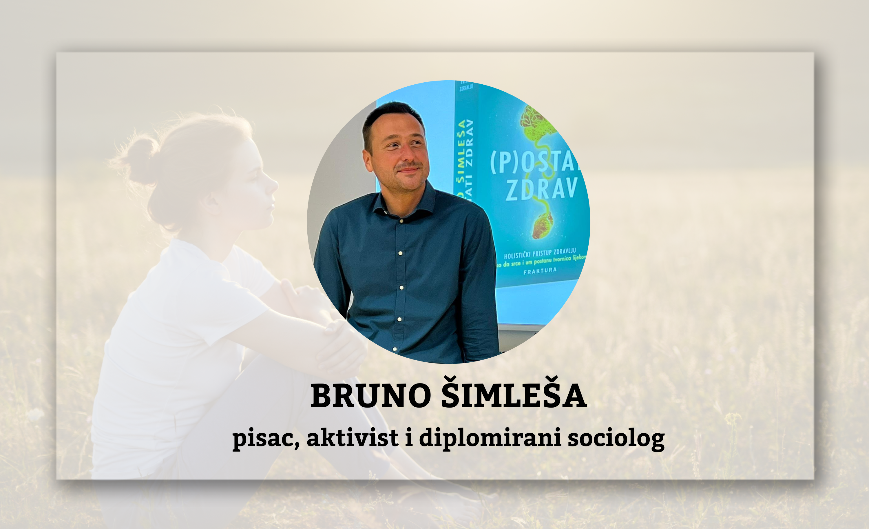 Bruno Šimleša (1979.) autor je 10 knjiga iz područja popularne psihologije i duhovnosti. Po struci je sociolog, a diplomirao je 2003. godine na Filozofskom fakultetu Sveučilišta u Zagrebu. Prijašnje knjige u kojima je fokus bio na odnosu prema sebi i ljubavi kao što su Ljubavologija i Škola života jedne su od najprodavanijih knjiga u Hrvatskoj i regiji. Njegovi su naslovi objavljeni i u Sloveniji, Srbiji, Makedoniji i Albaniji, a ukupno je prodano više od 200.000 primjeraka. (P)ostati zdrav je njegova prva knjiga s fokusom na zdravlje.