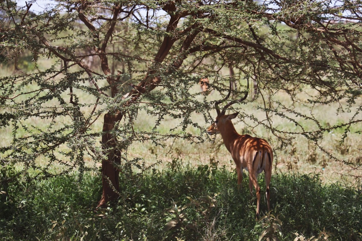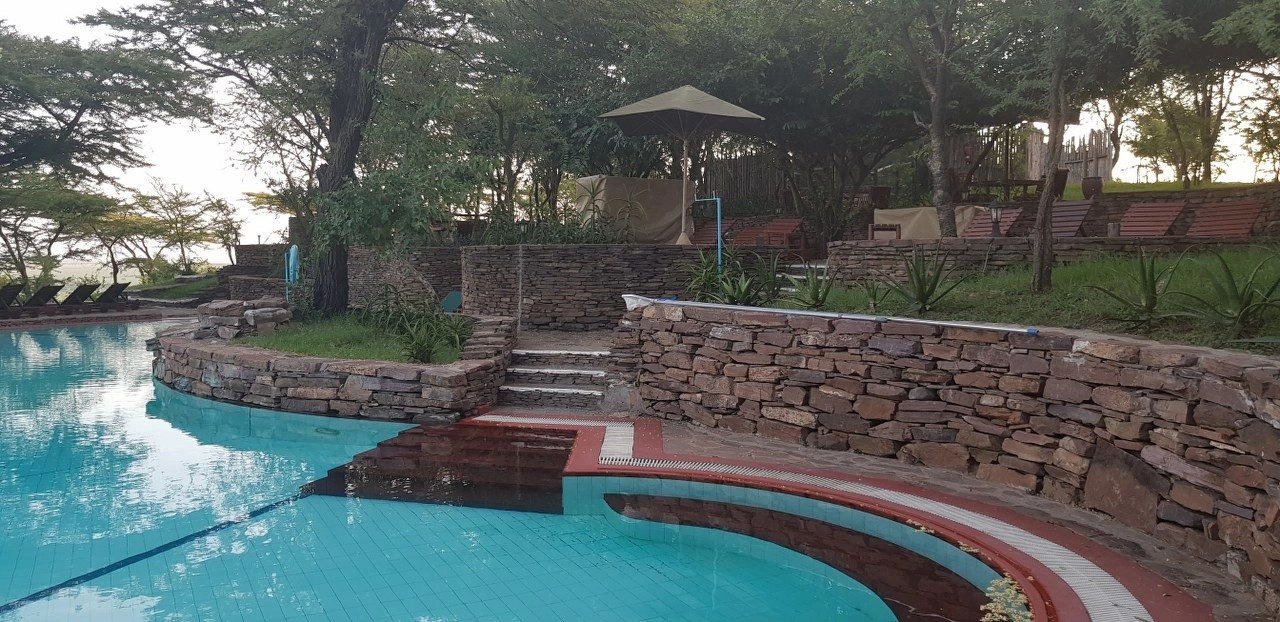 Nakon oblačenja, dolaženja k sebi i doručka, bacamo smo se na razgledavanje lodge-a. Što više vidimo, to se teže mirimo s činjenicom da ga ubrzo i napuštamo. Zelenilo, bazen s pogledom na savanu, potpuni mir, bungalovi i potpuno divlje životinje koje okolo slobodno trčkaraju. Dalo bi se tu provesti nekoliko dana i odmarati.