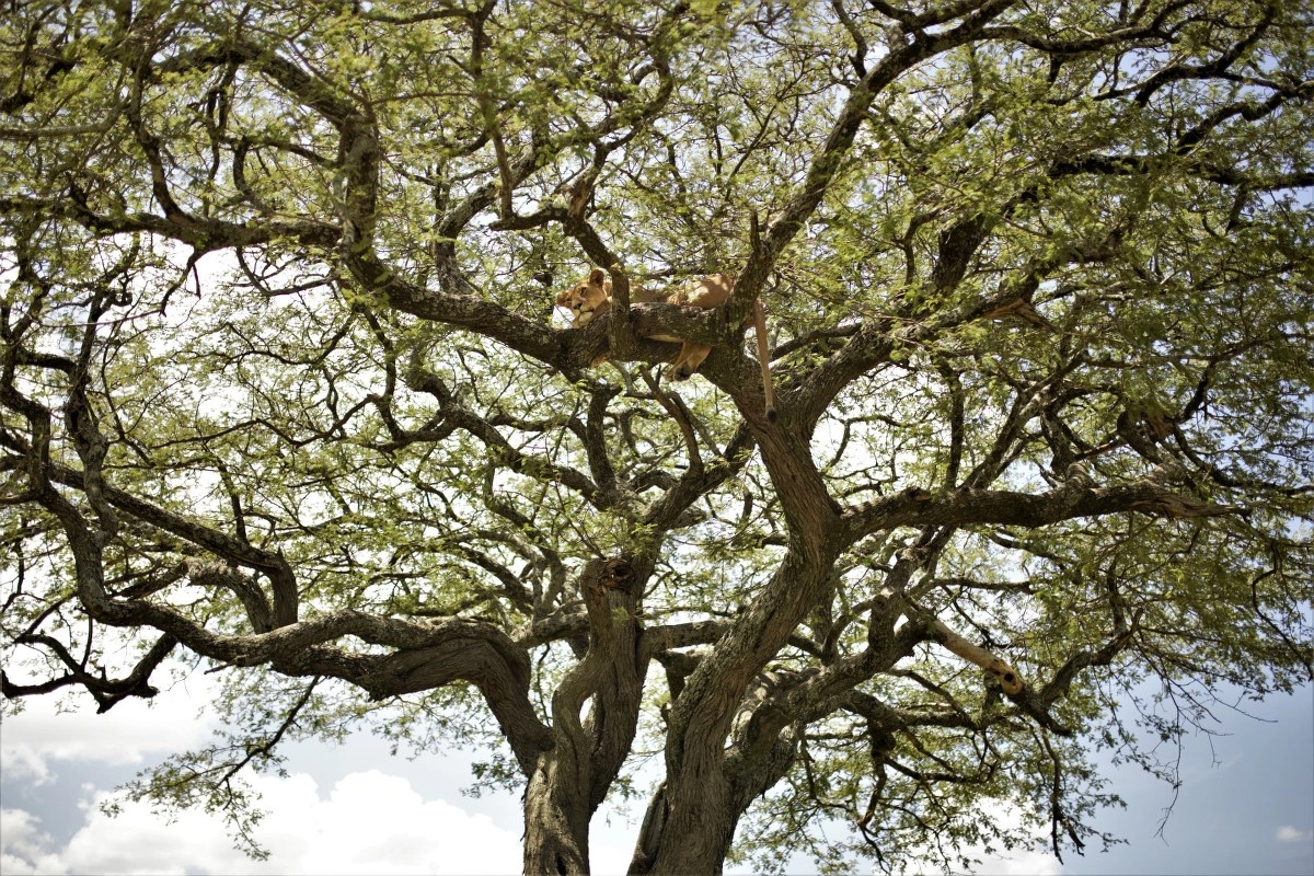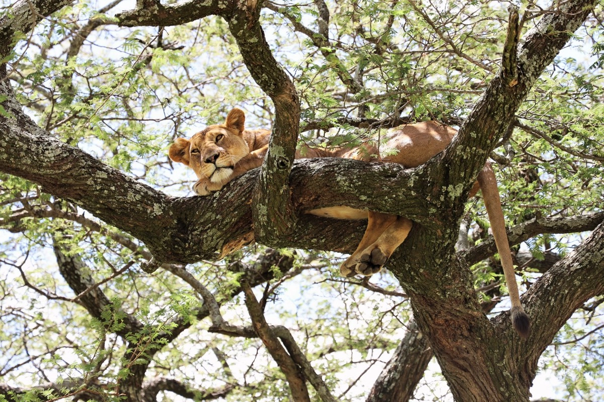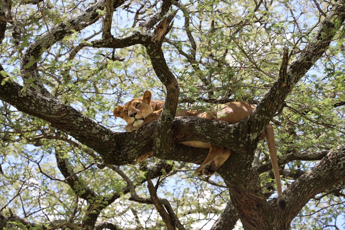 Nama se osmjehuje u trenutku kada ispred nas uočavamo džip ispod akacije i „četiri oka“ uprta u krošnju drveta. Jasno je odmah da se ovdje nešto dešava! Mirno prilazimo i visoko na grani uočavamo apsolutnu kraljicu Afrike – lavicu! Odmara i drijema, ne mareći previše za nas. Oči joj se sklapaju dok joj povjetarac lagano, u sigurnome hladu, hladi tijelo. Prekrasna je! Ima svježu ranu na trbuhu i pitam se kako ju je zaradila i s kime se borila? Mora da je bilo nedavno.