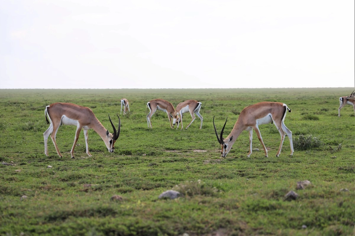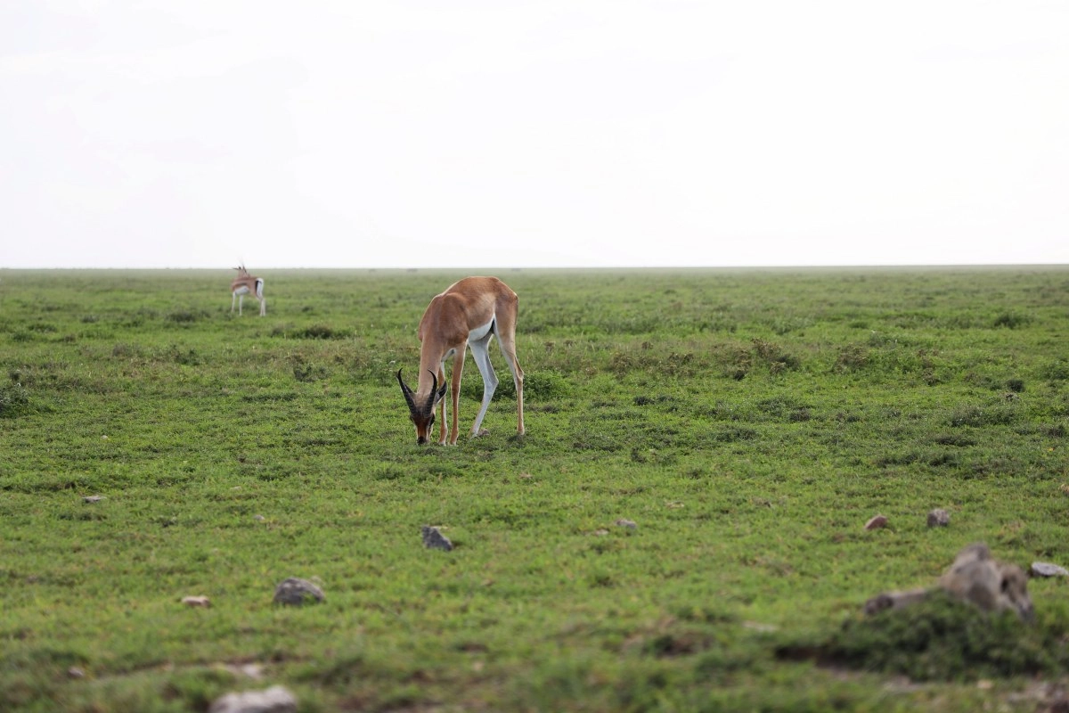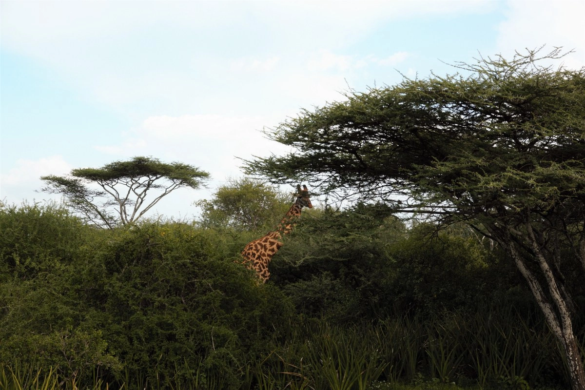 Krajolik se opet mijenja i iz puste stepe ispraća nas tek jedna mala Thomsonova gazela, gnu i ptica u niskom letu nalik čaplji. Ulaskom u savanu okružuje nas grmlje, drveće i zelenilo! Odmah ugledasmo žirafu u daljini čiji se vrat, kao periskop iznad razine mora, uzdiže iznad krošnji drveća. Tu nas odmah pozdravlja i maleni znatiželjni šakal (čagalj).